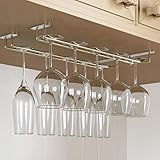 Cmecial - Space saver the under cabinet hanger rack will help you to optimize your shelving space No more tip over wine glasses when reaching for something from your cabinet Designed to slide glasses very easily with minimal chance of breakage The wine glass hanger are perfect for wine glass storage stemware rack under cabinet wine shelf cabinet wine glass rack insert under cabinet wine glass rack small wine rack under the cabinet wine glass holder and kitchen organizer Easy installation dont want to drill any holes No drilling is needed Wont obstruct the cabinet door either The adjustable hanging wine glass holder are easy to install with the brackets and screws included in the packaging The wine glass storage rack suitable for different shelves without damaging the furniture