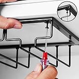 Heavy duty and antirust made of highquality metal material with perfect paint praying the under counter wine glass rack has good durability antirust and easy to cleanWith durable construction the adjustable wine glass holder under shelf storage is sturdy and adds a touch of elegance to your kitchen This wine glass hanger under cabinet ideal for wine glass shelf wine glass drying rack wine glass holder cabinet wine glass rack wall mounted and wine glass under cabinet holder