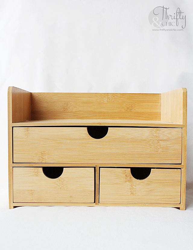 I used a cute little wood pull I got from Hobby Lobby on the top drawer.
