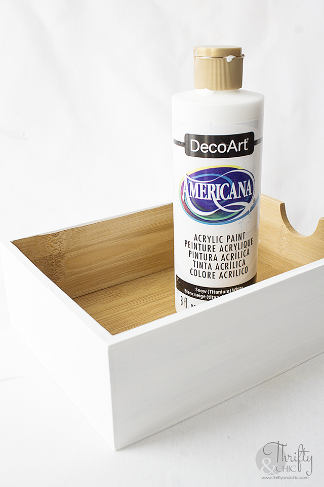 Step 2: Paint the whole thing, besides the inside, with White Wash. This will take multiple coats. Use a hair dryer to speed up the process.