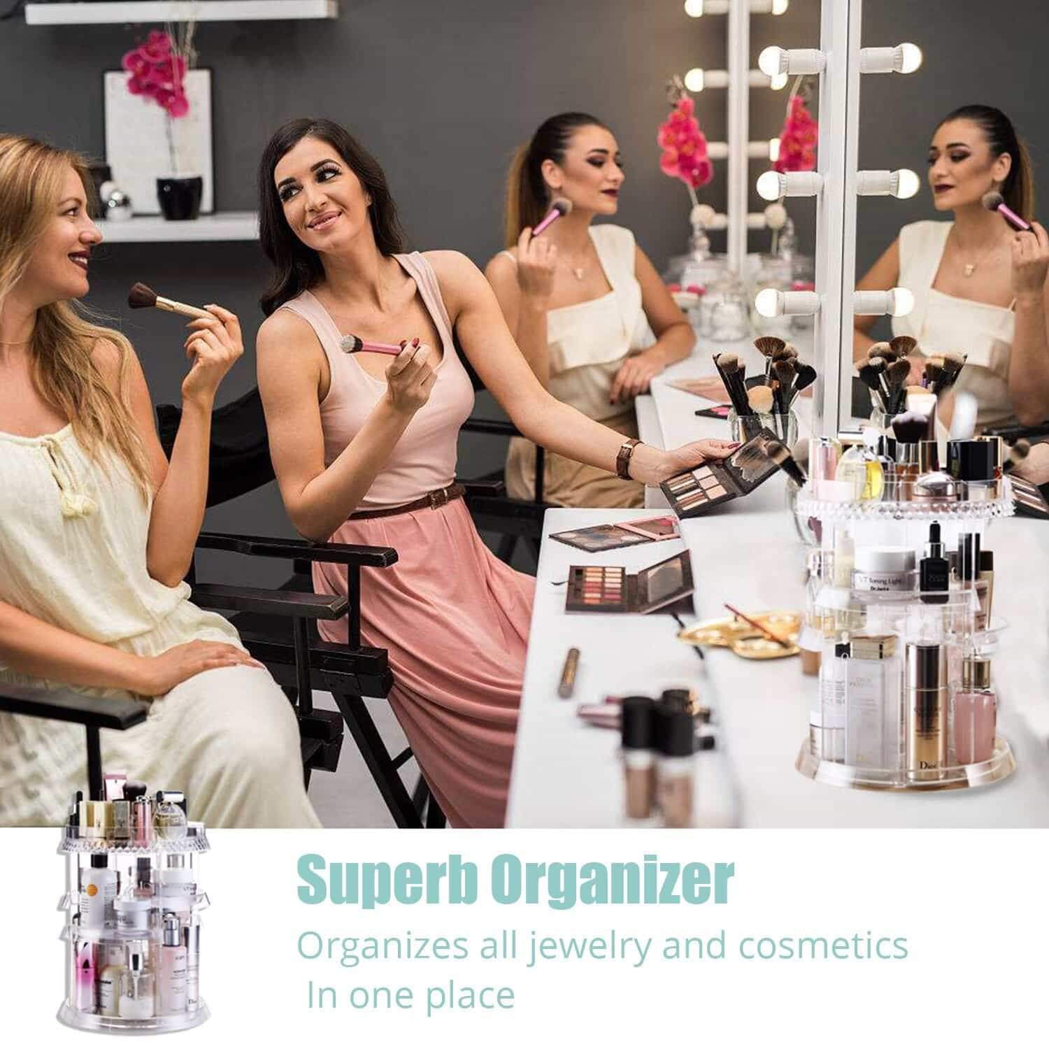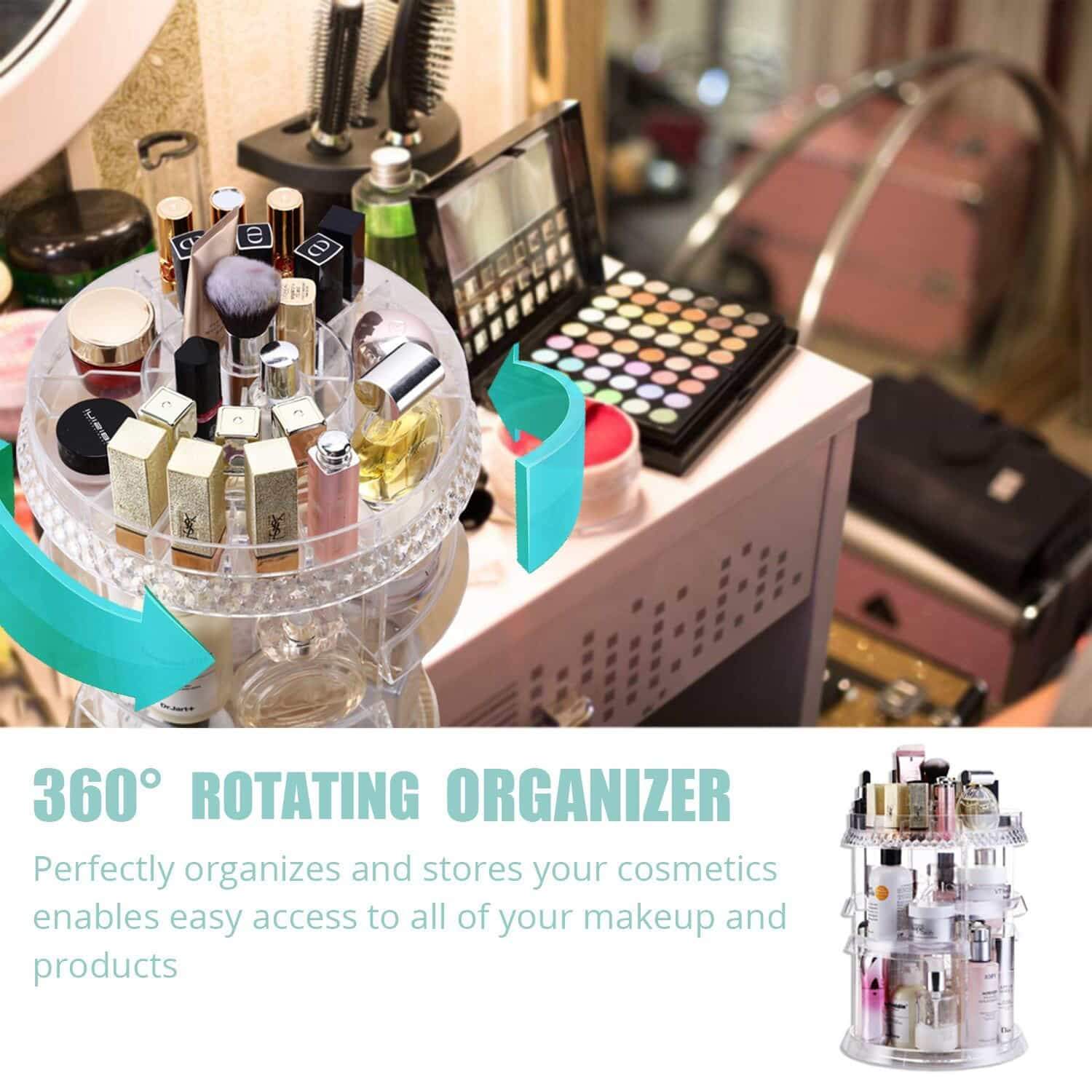 - 【360 Rotating Makeup Organizer】The Rotating Tray makes it easy to find products and keeps everything within reach, and it rotates smoothly and silently.